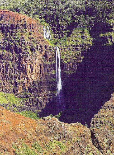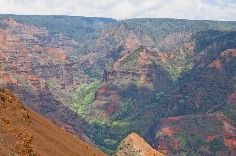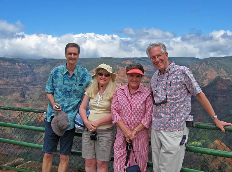 | One of the major sights to see on Kauai is the Waimea Canyon, often called the "Grand Canyon of the Pacific." Here's the intrepid explorers at one of the observation points, along with a view down into the canyon. | |||