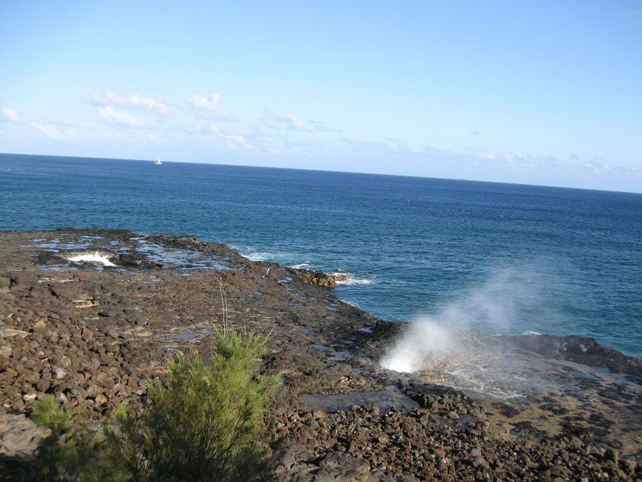 Right near the Westin resort is this picturesque lighthouse. On the other side of the island, we took in the famous "Spouting Horn" just as waves were hitting it. | |||