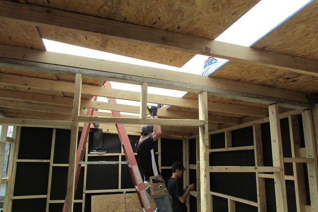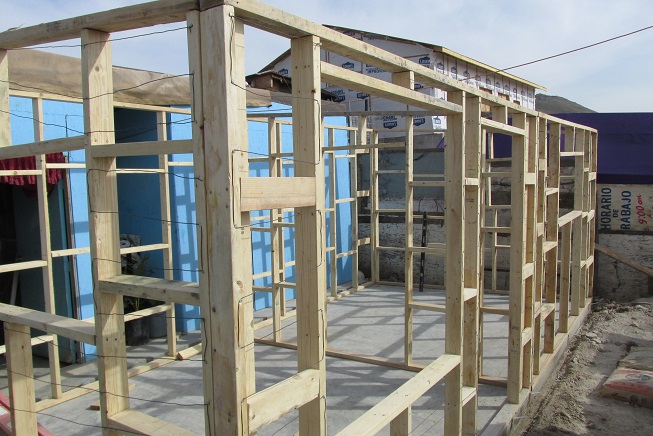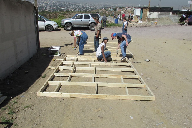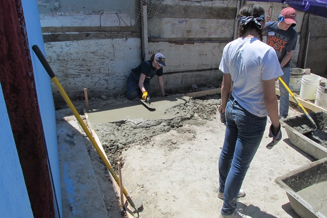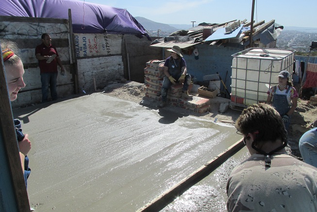 We no power, we hand mixed concrete and got busy creating the foundation slab for the new house. By afternoon, the slab was half done, and some of the team broke off to start framing walls out in the street, the only space available. | |||