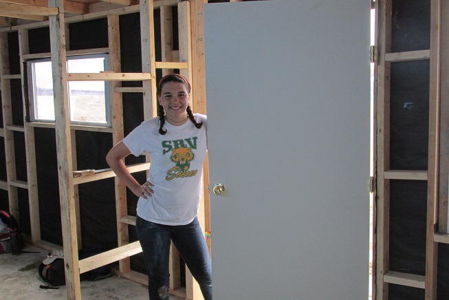 Back at the work site, the roof plywood went on perfectly, building paper and chicken wire were attached, the first coat of stucco was laid on, shingles put on the roof, the windows and and front door were installed, and we were almost done. With tears all around, we presented a bi-lingual Bible and door keys to the family. | |||
