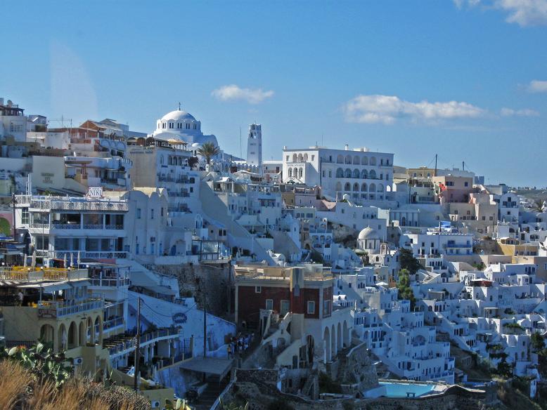 looks like from our ship, what the view is from the town looking back into the caldera (the whole island is