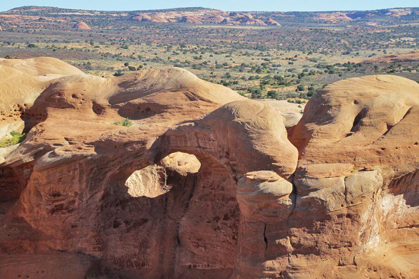 Before you get to Utah, you have to cross the Nevada desert-- not much there but the town of Wendover, right on the Utah state line. Wendover Historic Airfield is where the Enola Gay B-29 was outfitted and the crew trained -- before flying to Tinian Island, and then on to Hiroshima. The little museum has all sorts of artifacts, and is right beside the iconic 1940's control tower featured in the old movie "Con Air." First was Arches National Park, with over 2000 natural sandstone arches. We saw all sorts of arches and stone formations, including the park's signature, Delicate Arch. (It doesn't look very big, but it's back a ways - it stands almost 100 feet tall.) Unfortunately, the hike up to see it was over uneven ground, and Sandy twisted and sprained her right ankle and foot. We were staying in nearby Moab, where there was a great hospital, whose emergency room confirmed no bones had been broken - just lots of pain and tenderness. (Ironic: an injured arch at Arches National Park!) | |||