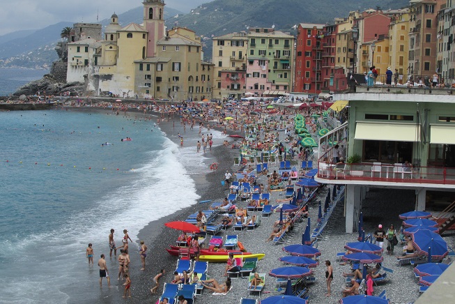 Portofino was the next port on up the italian coast. (Yes, this is the real Portofino, what the one at Universal Studios-Orlando tries to copy.) Portofino is a cute town nesled in a small bay. It has a statue of Jesus underwater in the harbor, but you have to go Scuba diving to actually see it. Mike and Sandy took a boat trip over to the nearby resort town of Camogli, where they saw the beach (no sand - just pebbles) and the giant frying pan used once a year at the fisherman's festival to cook fresh fish which are given to the poor. | |||