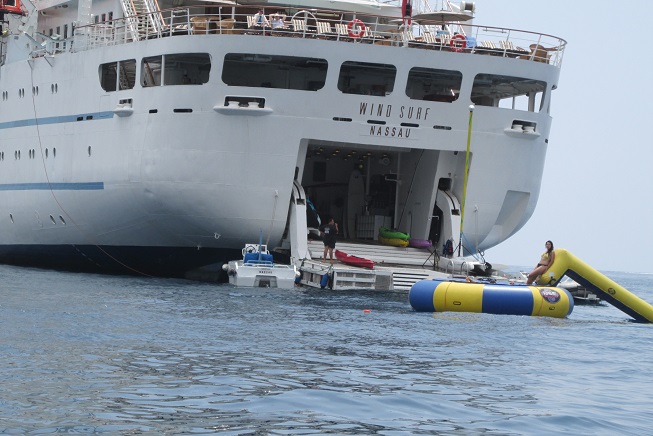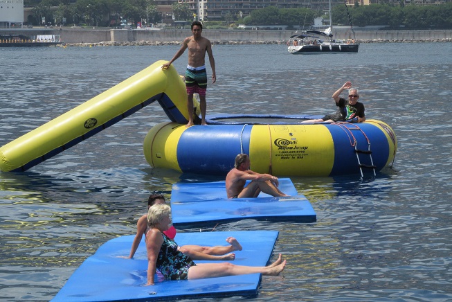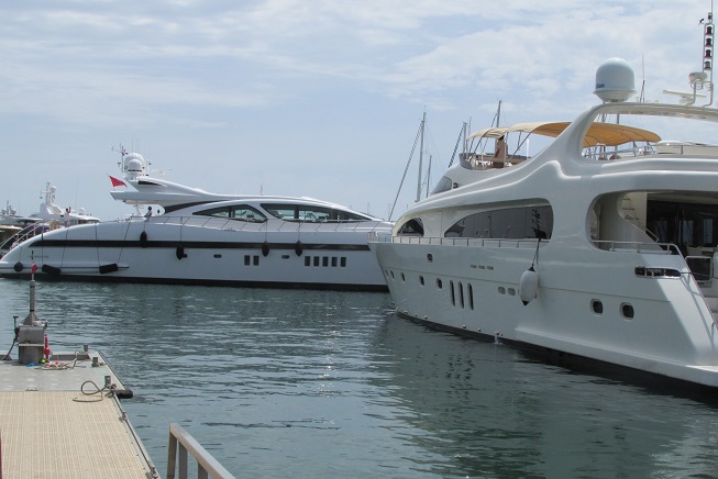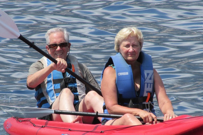 Taking a bit of a gamble, the WindSurf next stopped at Monte Carlo. The team of tourists made an effort to go visit the nearby mountain-top village of Eze, which Mike and Sandy have enjoyed on previous visits, but were stymied by a workers strike and the fact that it was Sunday. So they returned to the Wind Surf, which had put its water sports platform out the back, and did some kayaking and swimming. (Confidence in Mike's kayaking skills was not universally held!) | |||