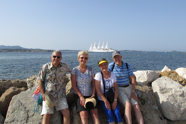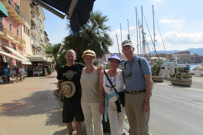 Mike and Sandy got to Rome via Chicago and Madrid (airline miles award users can't be too picky!), and after a night at a cute B&B near the airport, were ready to board the Wind Surf, part of the Windstar Cruises line. (By coincidence, the Holland America Captain that recently took Mike and Sandy to Antarctica was Captain of the WindSurf several years ago.) The ship headed out and turned north along the coast of Italy. Early in the morning, the ship carefully passed the island where the ill-fated Costa Concordia ran aground several years ago. Portoferraio, the largest town on the island of Elba, was our first port. Elba is what's left of a land bridge that connected Italy with Corsica centuries ago, and is also known as a favorite of Napoleon. Mike and Sandy just wondered the town with friends Jessie and Pat, and scored some cheap WiFi minutes at a gelato bar (delicious!) | |||