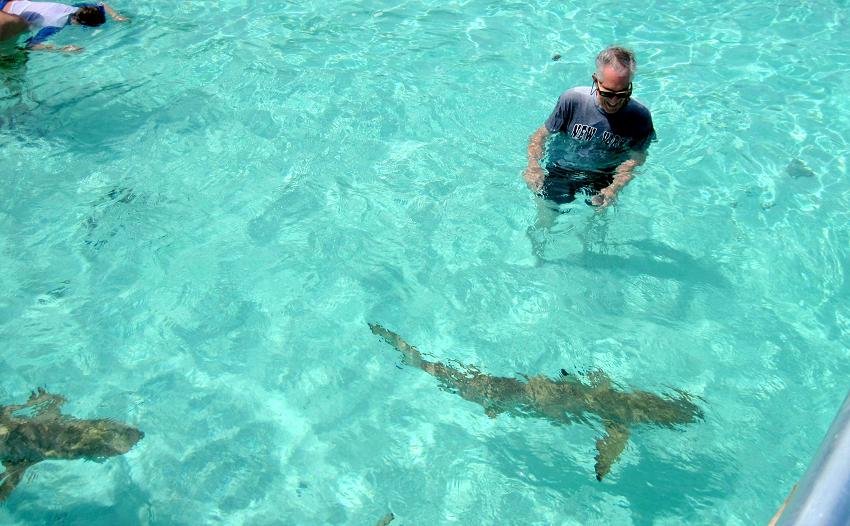 the circling reef, petting sting rays, admiring the sharks that come to get a snack, and exchanging