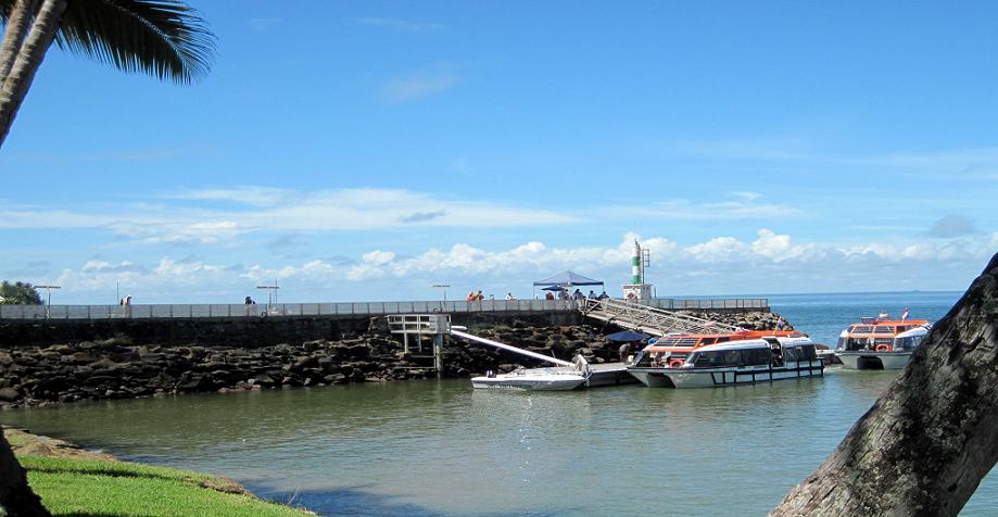 book and old Steve McQueen movie "Papillion"). The island doesn't look too bad from the dock where our tenders brought us,
