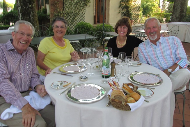 Mike and Sandy, along with 30 folks from their Danville church, finished up a week-long cruise from Rome to Barcelona on the sailing yacht Wind Surf, and flew back to Italy for a 9-day road trip. This adventure, with friends Janet and Roland, was in three parts, starting at Siena, then moving to the Cinque Terre region on the west coast, and last to the area up north around Lake Como. | |||