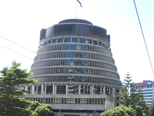 views, and walked back down into town, passing the "beehive" building of the New Zealand legislature.