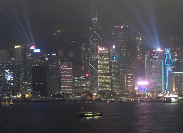 with some amazing views of the new Hong Kong airport below. The nightly "Symphony of Lights and Lasers" show over